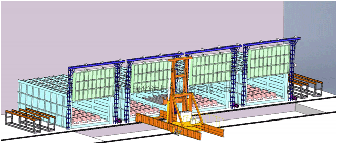軌道式叉車轉移自動調質生產線>>>